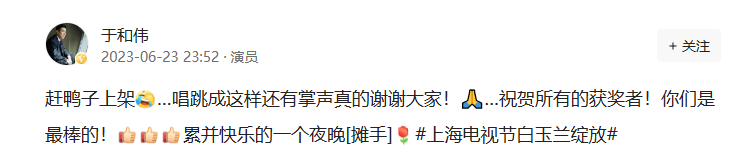 颁奖结束后,他自嘲地说,自己的唱跳能力这么差,还能得到掌声,真是要感谢大家。