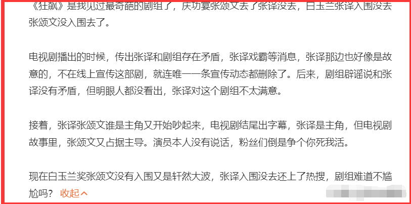 有人推测,张颂文在整个颁奖晚会上显得闷闷不乐,可能与《狂飙》剧组内部的不和传闻有关。