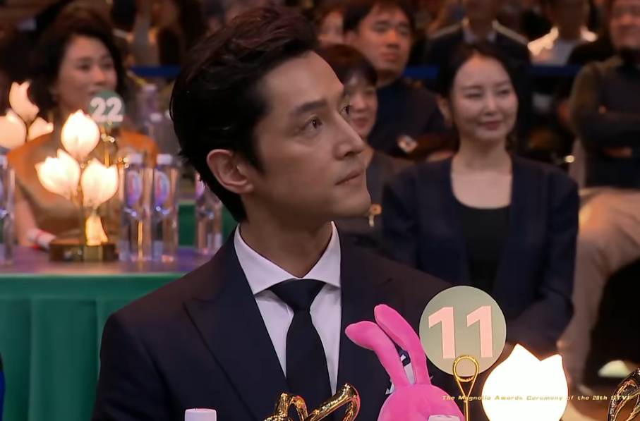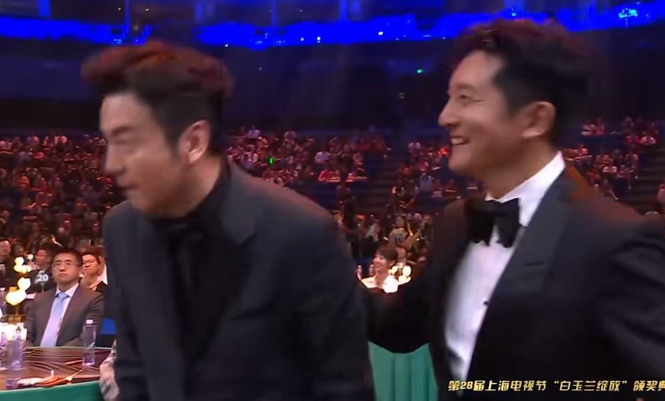 李光洁看到获奖者的名字后,忍不住露出了无法掩饰的笑容,他的身体挺直,露出了自豪的姿态。