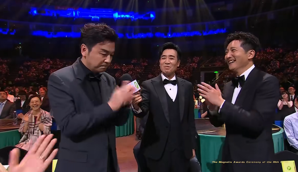 当颁奖嘉宾段奕宏撕开获奖名单的那一刻,我们可以看到,镜头中的四人都充满了紧张和期待的神情。
