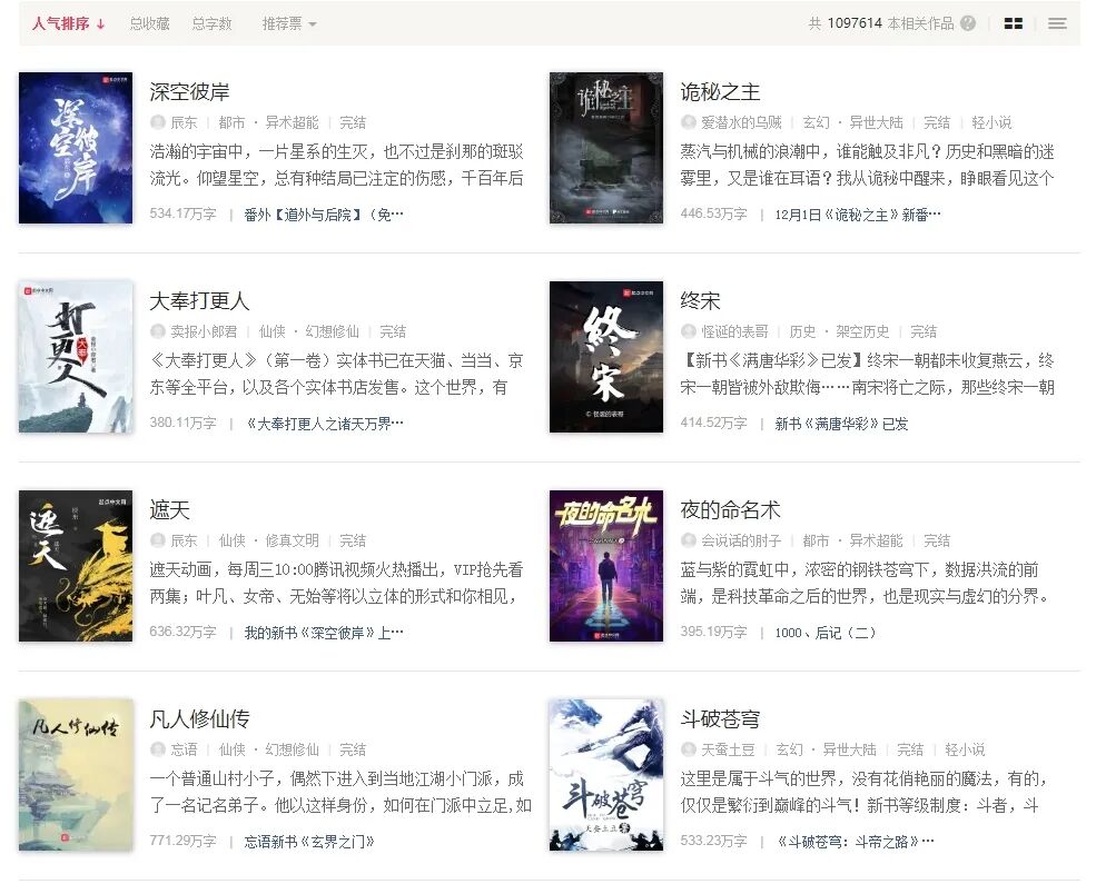 另外,咱们国内还有一个特殊的图书类别,那就是咱们国内特有的网络小说文化。
