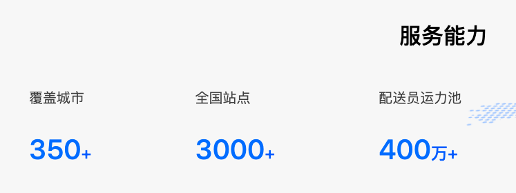 根据菜鸟网络企业官网的介绍,菜鸟直送服务能力覆盖超过 350 个城市,全国有 3000 个站点,配送员运力池已经达到 400 万以上。