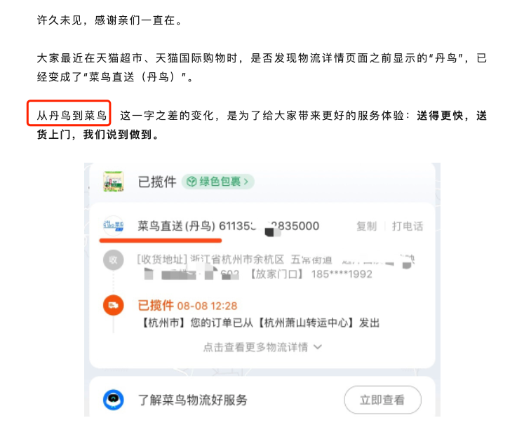 以至于大家知道天猫超市送货快,但很少有人知道其实是丹鸟送货快。
