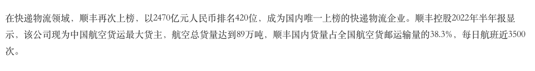 一来,顺丰、京东早在长期的实践中建立起独特的护城河。顺丰,有飞机资源( 全国 1/3 的航空货运量 );而京东又靠自建物流和京东电商输血。