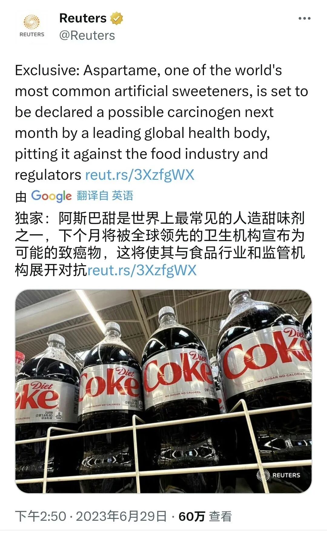 爱喝无糖可乐的友友们,今天可能被伤得不轻。
