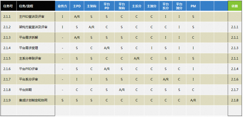 通过RASCI的责任矩阵的思路可以非常好的帮我们把各部门各个人的工作责任、范围、分工划分清楚,避免协作中的误解。