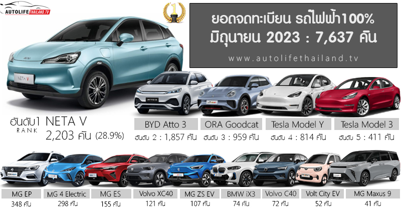 【力压特斯拉,中国品牌包揽6月泰国纯电动汽车登记量前三】泰国汽车网站 AutoLife 近日公布的数据显示,6月泰国新车登记总数为59602辆,其中纯电动汽车(BEV)登记量为7637辆,占比达12.81%。分车型来看,来自中国的哪吒V、比亚迪Atto 3和长城欧拉好猫登记量位居前三,力压排名四五位的特斯拉Model Y和Model 3。此外,上汽名爵和吉利旗下沃尔沃品牌也都有多款车型上榜。(IT之家)