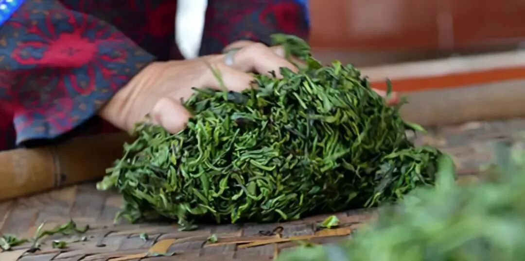 将成片的茶叶搓成条索状,为之后的步骤做准备。