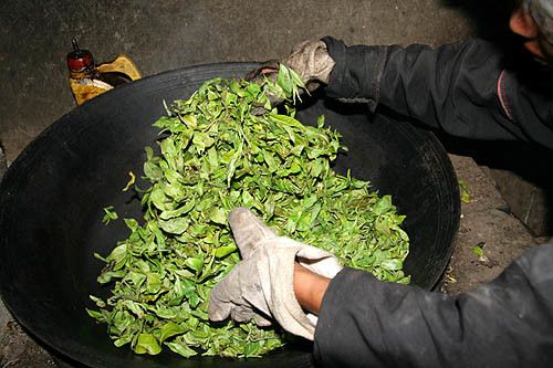 短暂进行高温处理,去除茶叶中过高的水分,以软化茶叶,这个过程便是杀青。