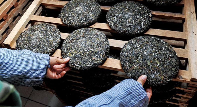 每一饼普洱茶,都是用棉纸纯手工包装,以便后期储存转化。