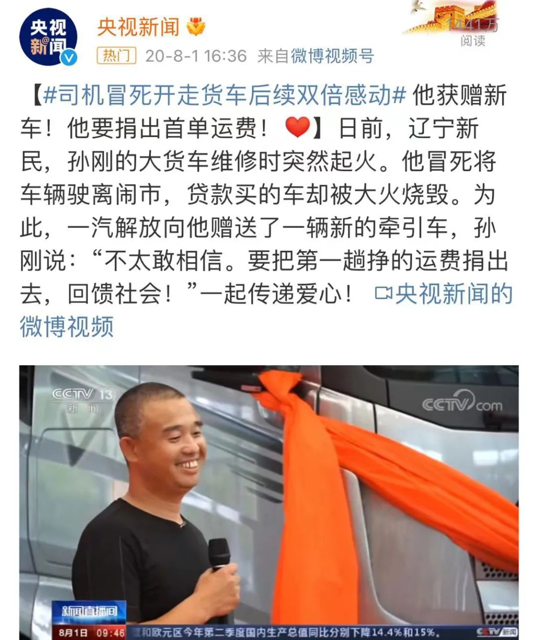 开着这辆新车,后来,孙刚又把第一趟挣来的钱,全部捐给了一家敬老院。