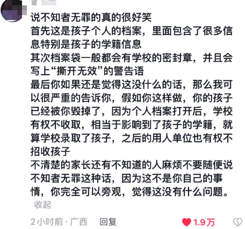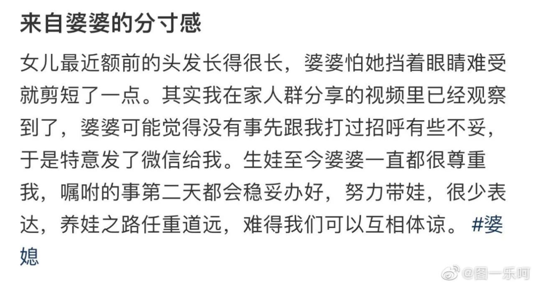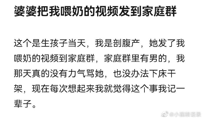 如果你是一个新手妈妈,正焦虑于如何适应这个新角色。有一天,却突然在家族群看到自己的喂奶视频,会是什么感受?可这不是什么奇葩家庭剧的情节,而是一位网友刚刚经历的“恐怖”。生孩子的当天,婆婆不知道什么时候录了一段自己喂奶的视频。家族群里,无疑还有很多男性成员。因为是剖腹产,网友坦言,那天真的没有力气骂婆婆了。也没办法下床干架,但现在每次想起来,都觉得这个事自己能记一辈子。毫无分寸的婆婆,就让她心里多了一道再难治愈的阴影。可当婆婆毫不避讳把她的喂奶视频发到家族群里时,显然忘记了把她当成一个正常人对待。翻开下面的评论,不是一个人,是许多妈妈在狼狈不堪,在精疲力尽时还要遭受的来自至亲的折磨。他们手握“我们是一家人”,“你又不是小姑娘了”的免罪金牌。正如周国平所说,“分寸感是成熟的爱的标志,它懂得尊重人与人之间必要的距离。“但我们时常忘了,这个规则在家庭之中,在父母与孩子之间,也不例外。任何关系无论多亲密,但凡界限消失,但凡有一个成员总是毫无分寸,就会不知不觉让隔阂横生。即使出于善意,一个没有界限感的父母,也可能毁掉子女一生的幸福。看过一句话:“爱孩子是一种本能,尊重孩子是一种教养”。缠绕许多为人父母的一个“恶疾”,便是以爱之名,行无语之事。这几天,惹怒全网的除了上面那个毫无分寸的婆婆,还有一个不知道“尊重”二字怎么写的妈妈。四川泸州,女儿刚从外面回来,就看到了让自己崩溃的一幕。女孩气的又哭又吼,从视频都能看出她当时的焦急无措。“无意拆了大小姐档案袋,急的哭起来了,吓得小的站着不敢动”。个人档案袋里面,装的是一个学生的毕业登记表,成绩单,在校的所有经历……孩子以后考研、考公,找工作,都是会被影响,甚至直接刷掉的。比无知更可怕的,是对孩子隐私严重的窥探欲,是永远学不会对孩子的尊重。曾有一个意想不到的话题,冲上热搜:没有锁的门有多窒息。1.3亿的阅读,近万人的讨论,背后都是明明在自己家里,却没有个人空间,没有自由的压抑共鸣。可当她把镜头对准自己现在住的房间,上面依然是门锁被撬掉的痕迹。但她的新年,依然只有一个简单的愿望:拥有一间自己的,上锁的房间。没有边界感的父母,再多的锁,也隔离不开他们控制的欲望。永远不要把“你有什么东西我不知道”,作为不尊重孩子的借口。永远不要用“我都是为了你好”,作为自己越界的理由。任何一段关系,因为边界感缺失,都会生出无限烦恼和内耗。因为彼此尊重,她们之间的相处,少了隔阂,多了舒服。儿子就在自己家楼上住,但她想去儿子家时,一定会提前发个短信。一个懂分寸,知边界的人,第一时间会考虑别人舒不舒服,而不是自己痛不痛快。著名主持人杨澜,在处理和孩子的关系上,一如既往清醒而通透。“我跟孩子有一个默契就是,进他们的房间先敲门,经得他们的同意。而且平时,不翻动他们的物品或查看他们的手机。”可事实永远是,学会放手,懂得回避,进退得宜,各归其位,才是真正的爱,才是明智之举。为人父母,不让边界逾线,不让分寸乱套,才能牢牢守住一个家庭基本的和谐与幸福。ps:因为公众号改版,很多朋友反映,看不到脆皮的文章了。这样,以后你们就能继续看到我的文章。我以后,也能继续从你们身上收获温暖、力量、互动的快乐、前行的动力。大家好,我是脆皮, 一枚新晋奶爸,创业公司高管。去过很多城市,也曾在路边练摊。现在只想和你说最真的话,持续成长,不断精进。