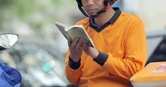 在他的外卖服口袋里,永远装着一本《唐诗三百首》。