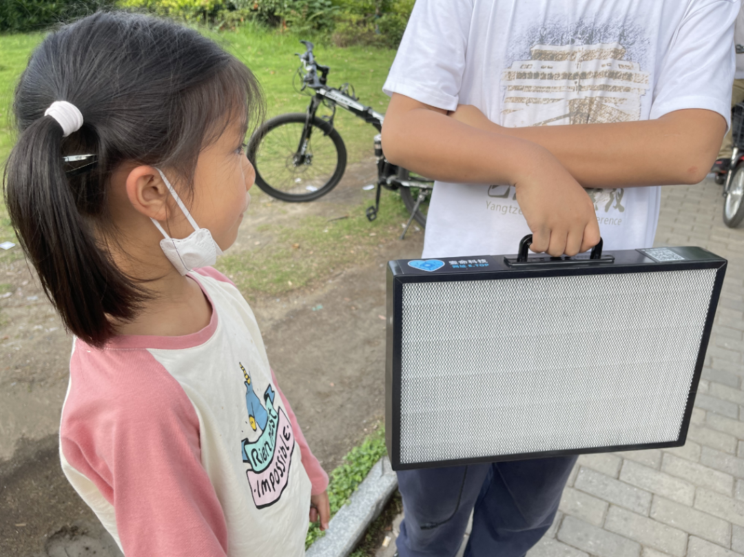 六一节我带孩子出门吃饭,就随身带着江卓尔研发的便携式自带充电宝crbox空净器,去酒店就带着林一五建议的便携紫外灯。