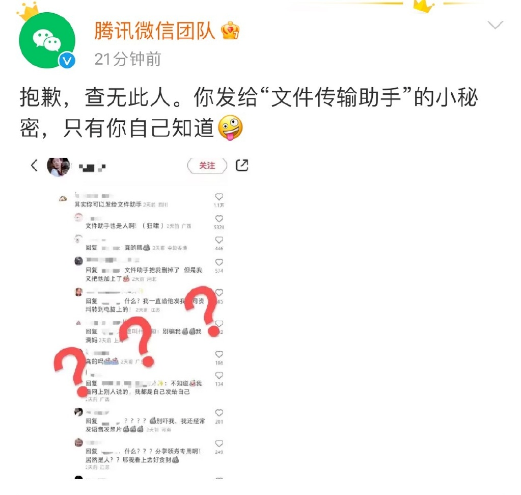 “你发给文件传输助手的小秘密,只有你自己知道。”