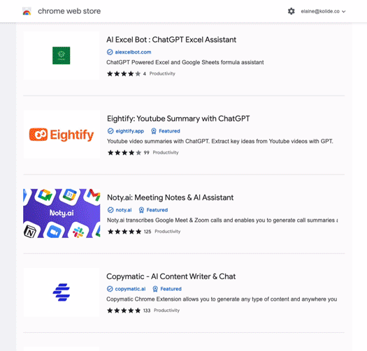 距离 ChatGPT 发布已经过去了半年多,AI 驱动的浏览器扩展程序迅猛发展。在 Chrome Web Store 中搜索“AI”,屏幕上会显示出密密麻麻的数百个选项,让人眼花缭乱。