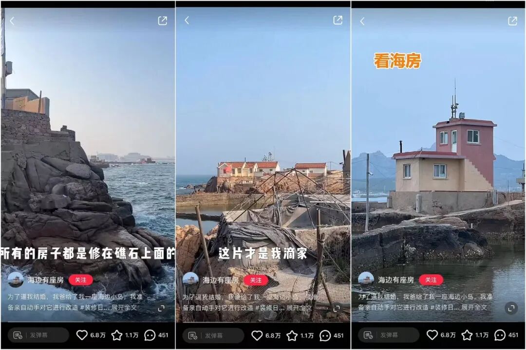 比如去年火遍全网的博主 @海边有座房,也是通过老爸在海边给自己留下的“破烂别墅”引入,一步步将其改造成为很多人心中的梦想之家。