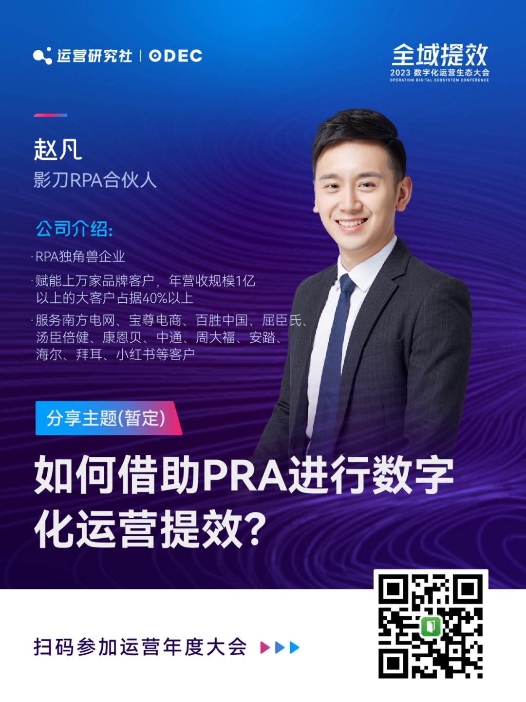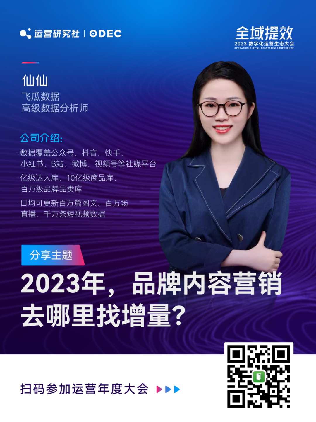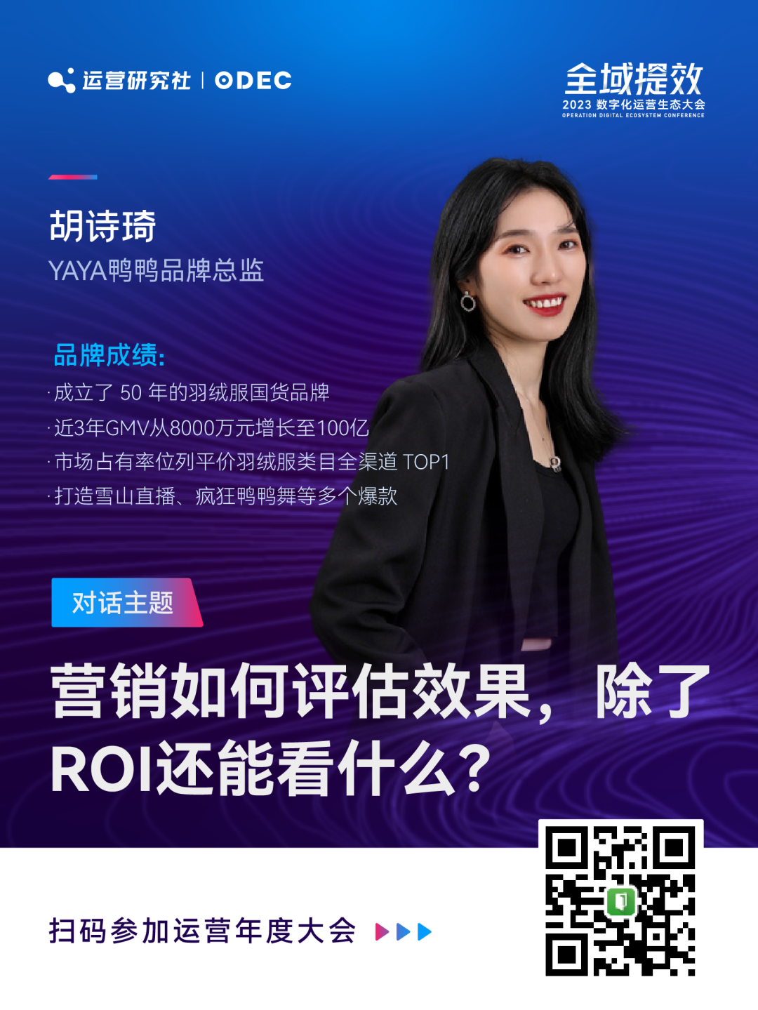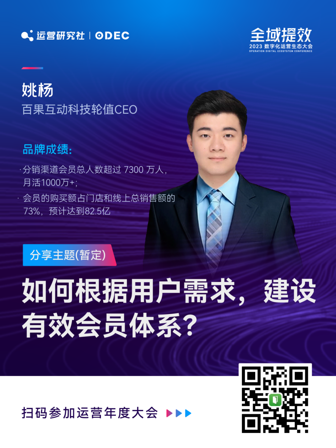 在本次大会我将结合品牌和零售商家案例,详解全域数字化运营的实践框架。同时我们策划了三个主题篇章,邀请 25 位品牌操盘手和运营实战专家现场分享!帮助品牌商家了解全域数字化运营新趋势、新打法、新案例。
