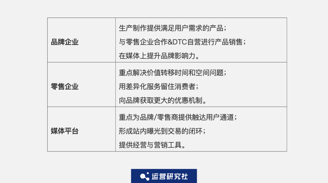 品牌企业将产品转移到消费者手中才算完成价值创造。在这个过程中,品牌一方面需要选择合适的零售渠道做商品/服务的变现(卖货),另一方面面对竞争需要在媒体平台做传播(含其他企业社群)提升品牌影响力。