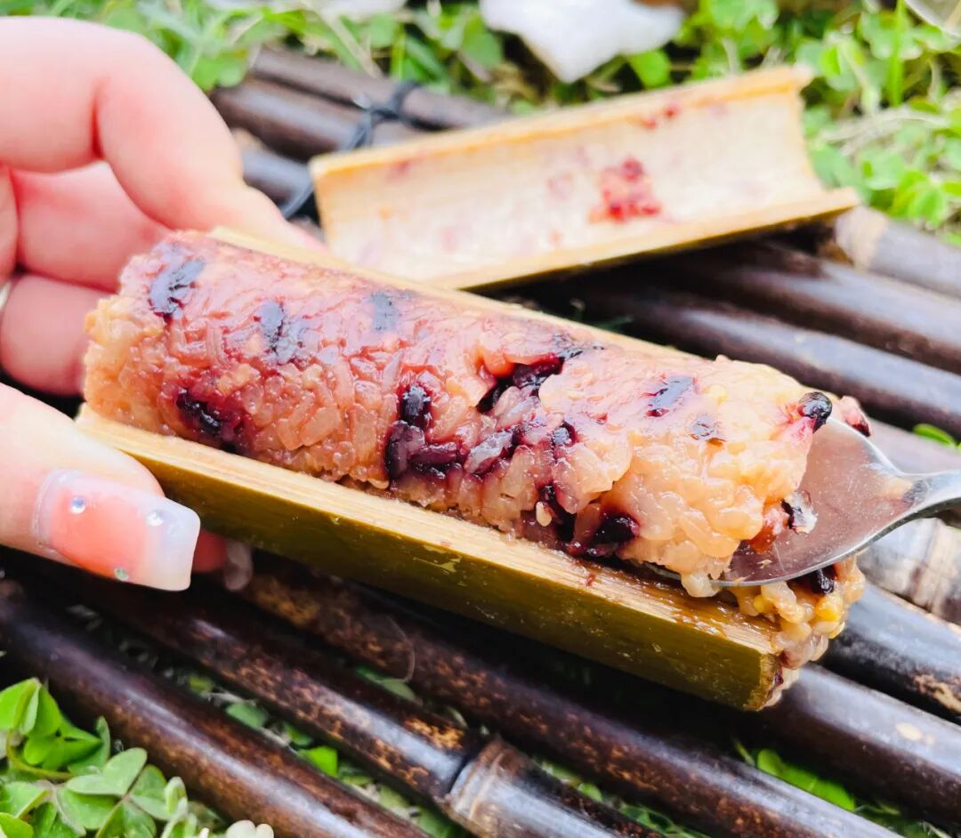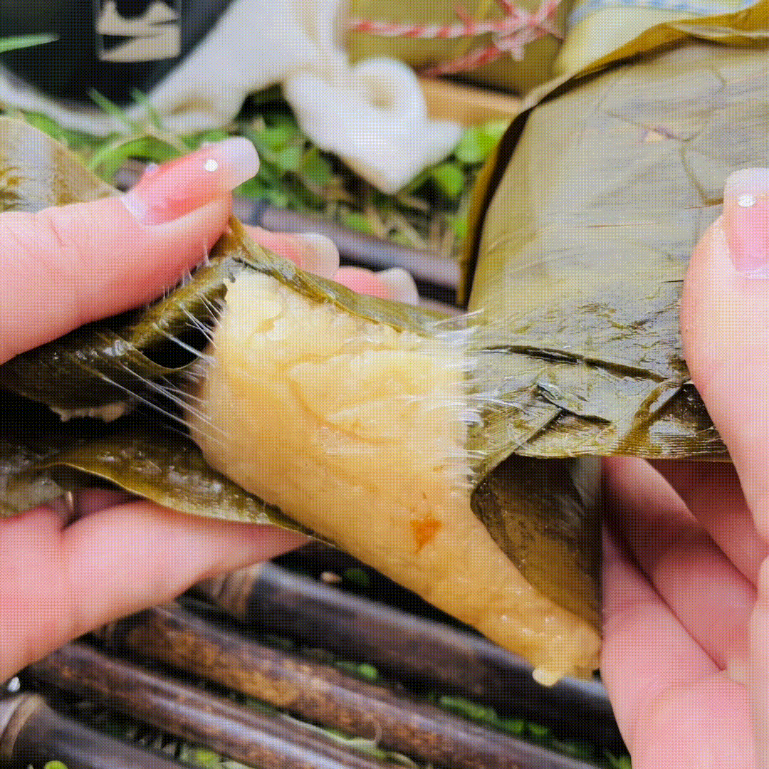 糯米的香甜和竹子的清香被温柔的包围在食物的香气里,竹子香、粽叶香、米也香,粒粒万香,仿佛自己瞬间到了竹林之间。