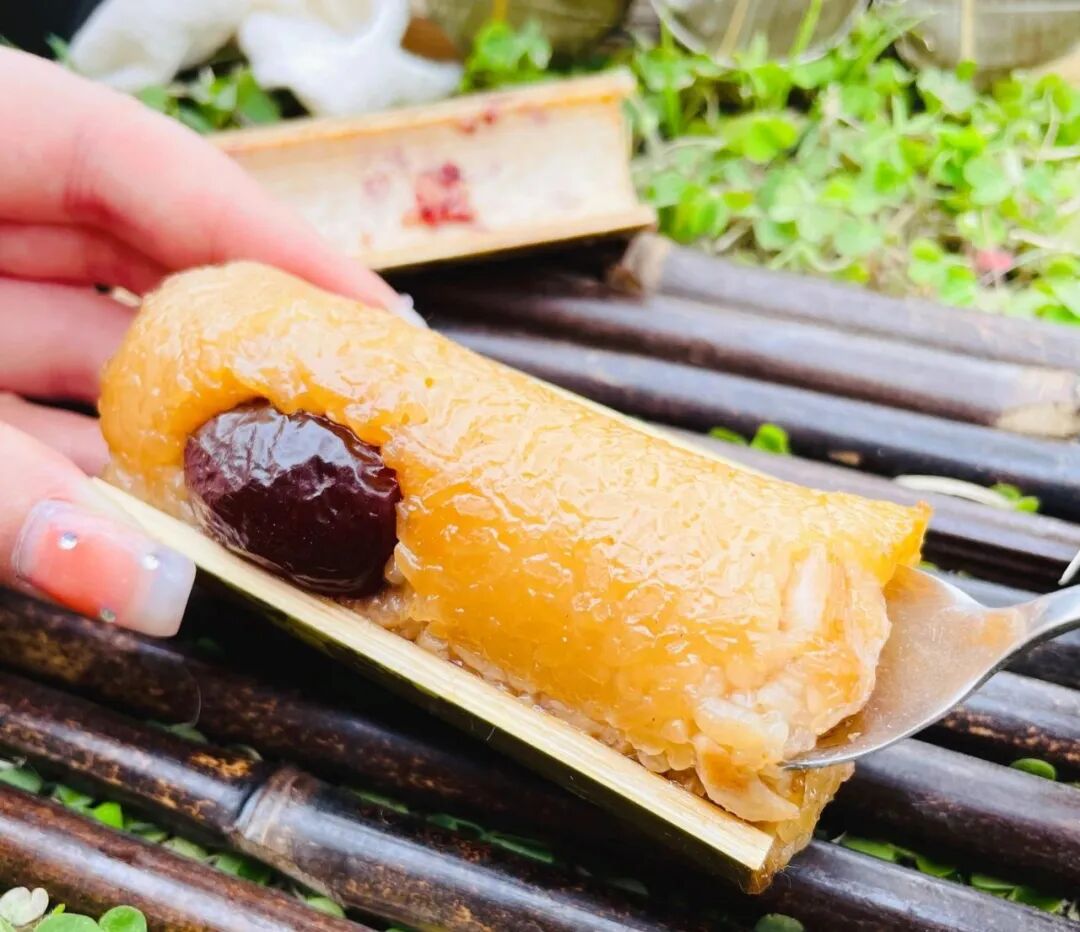 趁热剥开一只,感受桂花、玫瑰、牡丹花香,糯米的香甜和竹子的清香被温柔地包围在食物的香气里