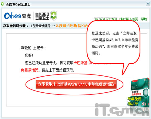 那会我还有印象,下载360安全卫士,就可以获得半年的卡巴斯基免费激活码,以及流氓软件查杀等服务。
