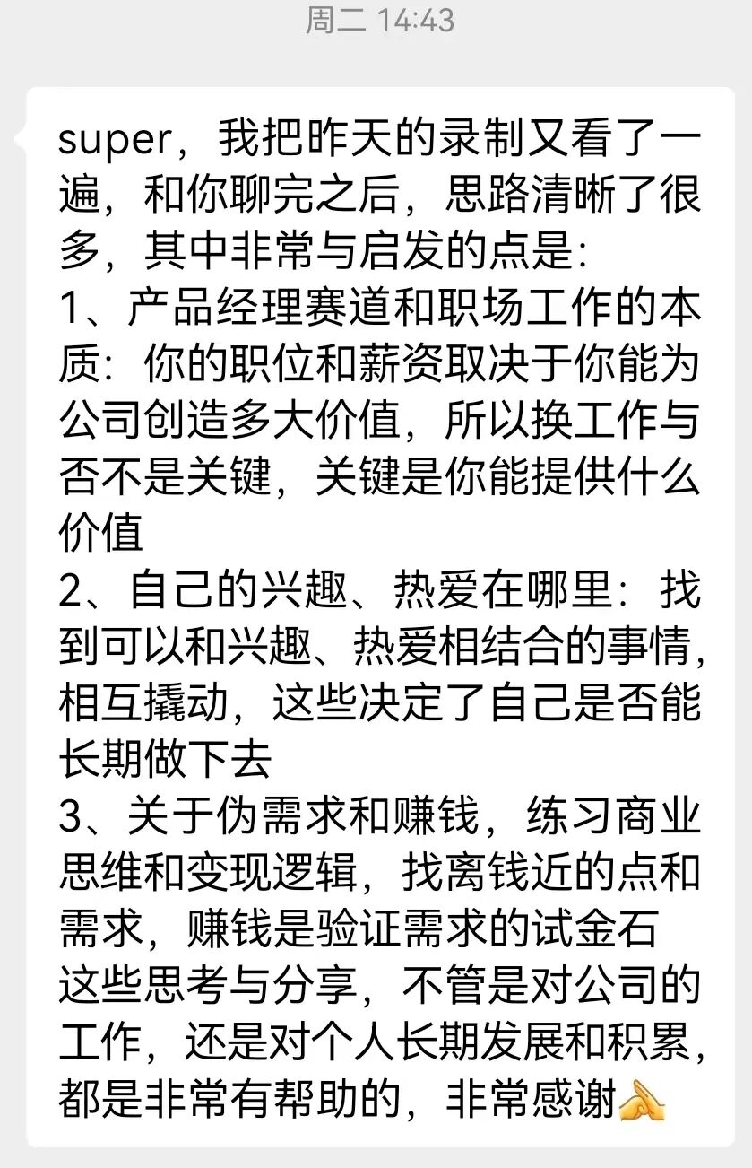 当下离钱链路最短最快的方式,就是把过去的经验变现, 再加上我很喜欢1on1的连接, 于是单聊咨询是一个目前很适合我的产品。