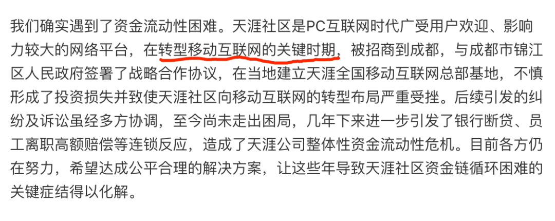 没有了足够的资金支持,天涯错过了关键的移动互联网爆发期。