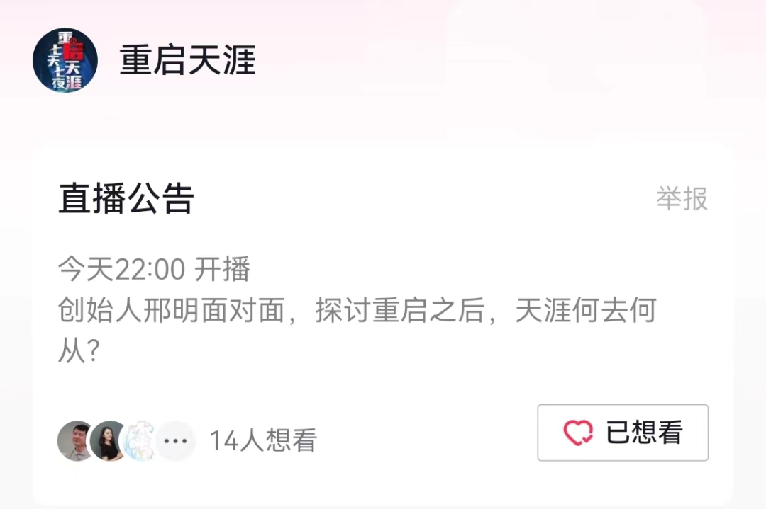 如果没有什么特殊情况,看起来天涯通过直播筹集足够资金这件事情不大可能。