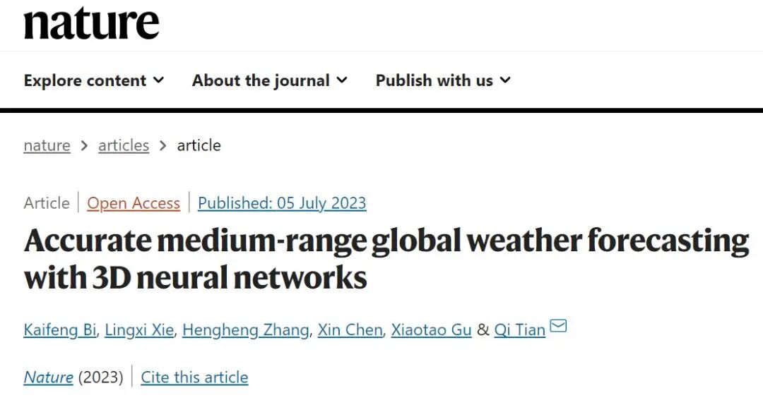 络绎科学,华为盘古气象大模型登 Nature 正刊:破解气象预测难题,比传统方法快 1 万倍