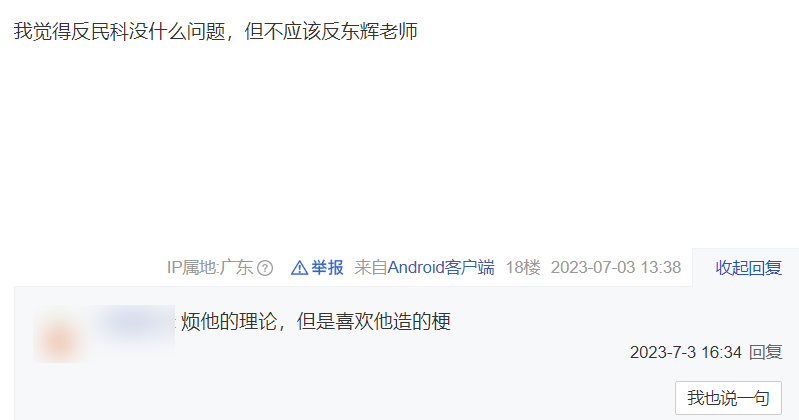 想看乐子的网友和支持钓鱼的网友,不愿意放弃王东辉,他们甚至称民科吧吧主封禁民科这一行为,属于吧主带头爆吧,进而跟吧主对抗起来。