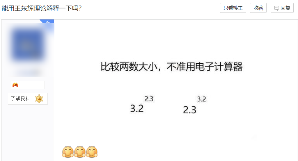 甚至还有学生曾被民科影响。王东辉走红后,一位吧友聊了自己的故事,他初二是数学竞赛生,因为接触到民科,一心觉得自己也能证明世界难题,最终竞赛生涯中断。