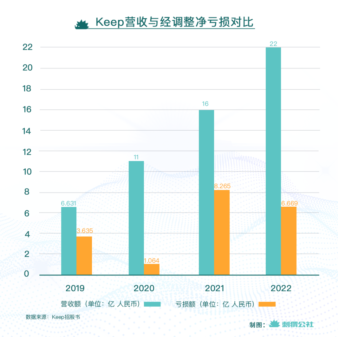 在递交招股书之前很长一段时间,Keep一直试图给人们留下中国版Peloton的印象。这是一家美国的线上健身公司,凭借着动感单车硬件+课程的模式,在2020年前后爆火。在健身需求向线上转移的那段时间,Peloton不仅产品卖得好,也广受资本市场宠爱,股票市值一度超过500亿美元。但随着线上健身需求的减退,Peloton的业绩大幅下滑,2022年更是大幅裁员,市值蒸发近90%。如今的Keep,虽然和线上健身退潮的受害者Peloton遭遇相仿,但再也不会拿Peloton出来自比了。如何避免走上Peloton的老路,才是Keep需要面临的问题。在刺猬公社看来,Keep需要做的第一件事,仍是将其自身打造成为一个有盈利能力的公司。2019年底以来,Keep的营收从6.6亿增长到22亿,但都处于净亏损状态,每年经调整后的净亏损也达数亿,在2022年底达到了6.669亿,总体上看未见明显收窄。因此,尽快“扭亏”,在线上健身的流量高潮退去之后保持良好的造血能力,对于Keep而言至关重要。其次,Keep同样需要继续提升会员渗透率,加快将免费用户转化为会员用户,才有可能守住用户基本盘,为之后的会员付费转化做准备。这一点Keep在过去几年做得比较好,从2019年底的3.5%提升到了2022年底的10%。对此,内容和会员是密不可分的。比如,Keep的互动直播课只有会员用户才可以观看,这种“拉客”方式与长视频平台有些相似,需要不断增强内容能力,以更多、更好的直播课等优质内容,吸引会员用户付费。Peloton给出的另一个启示是,单纯靠一类硬件、一类内容,其用户群体也始终有限。一家健身房只有跑步机一个项目是不行的,同样,一家线上健身平台,也不能只提供动感单车或者跳操等一类内容。无独有偶,和Peloton的大败局类似,2022年大火的跳操达人刘耕宏,在2023年的影响力亦大不如前。这有时代的原因,但可以发现,只有全健身品类经营、广招各类健身内容达人,才能让Keep更好地活下去。2019年9月,Peloton上市一周就告破发,市值蒸发近18亿美元。如今,当Keep终于站到上市前夜的节点上,尽管没有了线上流量大爆发的机会,但完全可以摸着Peloton过河。