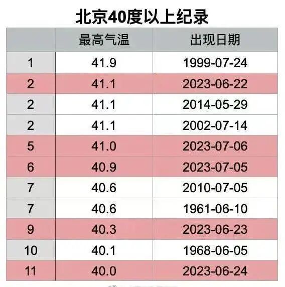 热浪同样席卷中国。7月6日,北京气温飙升至 41摄氏度,自1951年以来,北京曾有11天气温超过40摄氏度,其中5次发生在刚刚过去的两周。