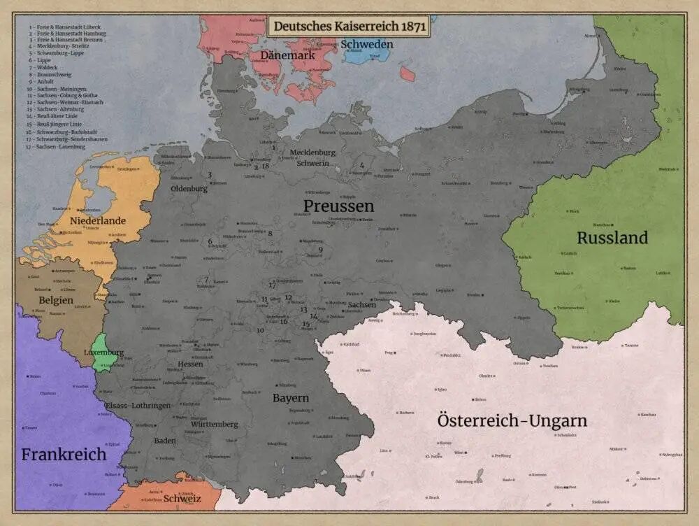 本文来自微信公众号:青野有枯荣(ID:Tsingyeh_Story),作者:青野Tsingyeh,原文标题:《自我实现的绝境:德国如何杀死了自己的崛起?》,题图来源:视觉中国在上一篇《胜于阳谋:如何比较严肃地谈论“大战略”》中,我们讨论了“大战略”中一些原则性、形而上的问题。而这些原则既来自历史,又去往未来,鲜活而详尽的case study始终是理解它们的最好方式。前些天,几位朋友与我做了一些连接过去和未来的延伸讨论,我发现,我们始终会回到“修昔底德陷阱”这个著名的话题——或许因为我们身处的现实提供了太多的引力。然而,我们兴趣并不在于“为何冲突不可避免”,而在于:挑战者国家的境遇和行为,有多少与当下的相似之处,又有多少可以让今人明白其将要面对的历史命运?一个典型的例子就是19~20世纪的德意志帝国——骤兴于民族主义、大众政治和新一轮工业革命的交错点,也骤亡于大国竞争最残酷的战场。在这半个世纪的时间里,它如何在“大战略”上作出精彩一击?又如何踏入了一场自我实现的死局?关于这段历史,《脆弱的崛起:大战略与德意志帝国的命运》一书提供了相当清晰的脉络。那么我们便借着这本书,聊聊“德国如何杀死了自己的崛起”。德国的崛起伴随着工业化、民族主义和大众政治的兴起,或许可以说,没有比德意志第二帝国更典型的工业化的产物了。在这个崛起帝国的身上,我们可以看到许多令人熟悉,但对彼时而言却是头一遭的概念:民族国家、产业红利、阶级变迁、思潮冲撞、政治革新……其国家的机体更加强壮,但其内质却充斥着更多未开的混沌。对这个初生的强权而言,它“是什么样的国家、要往何处去”,不是造就它崛起的禀赋和背景板,而是它在崛起的过程中必须回答的课题。我们可以想象一个比方:现代化和现代性是一场前所未见的风暴,它必须竭力保持其舰体完整,同时在风雨如晦中驶向正确的方向。讨论德国的“大战略”,地理是一个首要的出发点。德国的核心利益来自于其“四战之地”的地缘地位:西有法国(因为阿尔萨斯-洛林问题而难以和解)、东有俄国(此前未曾敌对,但双方边境漫长、互有嵌入且难以设防)、南有奥地利帝国(德意志统一战争中的老对手),仅北方面对北欧国家和北海,压力稍轻,但仍然对英国的海权敞开大门。总体来看,德国地缘最大的痛点就是时刻面临多线开战的风险,而在俾斯麦时期,这一风险的核心具象又在于“法俄同盟”——即在东西两侧同时面对军事压力的潜在可能。需要注意的是,德国的最终统一是靠击败奥地利和法国达到的,这种“非和平崛起”非常容易引发周边的敌意。尤其对于英国,欧洲大陆的均势局面已经明显改变,它已无法再像普鲁士时代那样站在德国背后,新生的德意志帝国必须寻找新的平衡、主动构造自己的地缘形势。![]()