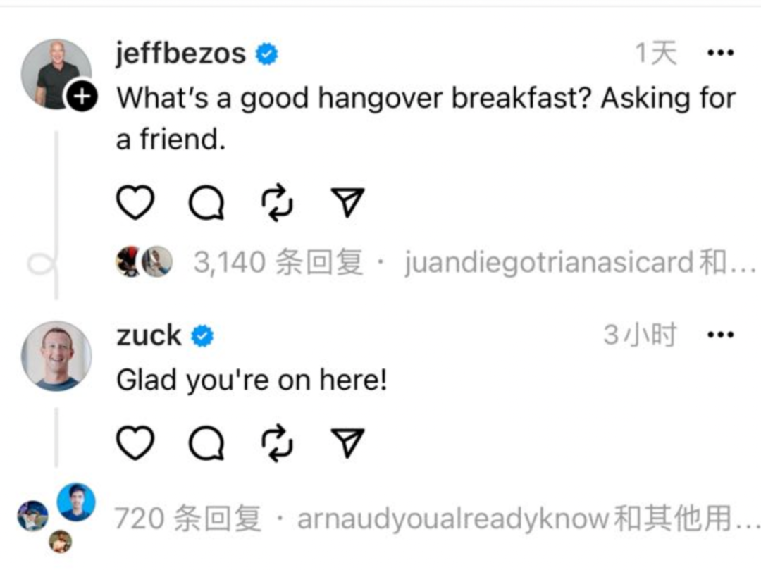 Threads有多火?除了5天之内注册用户破亿以外,用户的活跃度很高,据The Verge,过去几天Threads上的帖子数量已经达到9500多万条,点赞数1.9亿次。NBA球星凯文·杜兰特(Kevin Durant)说自己已经开通了Threds小号:“来找我吧。”在网友笑他幼稚之后,回复说“我就是不成熟。”堪称Threads的“自来水”。金·卡戴珊(Kim Kardashian)、知名厨师戈登·拉姆齐(Gordon Ramsay)、影星詹妮弗·洛佩慈(Jennifer Lopez)、NFL传奇人物迈克尔·斯特拉罕(Michael Strahan)等名人,以及Netflix、耐克、阿迪达斯、巴黎欧莱雅、迪士尼等品牌都已经入驻Threads。其中迪士尼还是推特最大的广告主之一。今年3月,马斯克曾在旧金山举行的会议上特别感谢了迪士尼和苹果,称他们是推特最大的两个广告主。马斯克的老对头杰夫·贝索斯也第一时间现身Threads,让大家推荐值得关注的账号给他,并在其后持续活跃。扎克伯格回复了其中一条消息说:“很高兴你上这儿来了!”而在推特,贝索斯的账号也有持续发布内容,但频率很低,上两条消息分别发布于5月和2月。在去年以440亿美元买下推特之后,马斯克就没有停止对这个平台的改造。为了削减成本和增加订阅,马斯克大刀阔斧裁员、裁服务器,还蛮力推进付费蓝标验证服务,但他的这些做法,也伤害了不少用户,甚至让广告商逃离。用户一直在用行动投票,只不过之前没有出现“有力的竞争者”。在Threads之前,也有不少竞品从用户逃离推特的趋势上获取好处。2016年就推出的平台Mastodon,在马斯克接手推特前,已经发展了6年,有约50万用户。马斯克接手才一个月,月增用户涨了8倍。到今年3月,Mastodon宣布用户已经超过1000万。推特创始人杰克·多西自助的去中心化Bluesky,施行邀请制,用户需要邀请码才可以使用。尽管如此,在今年4月上线苹果商店不到两周,安装量达到37万次,邀请码一度被炒到400美元的价格。在Threads上线的前一个周末,马斯克突然宣布在推特“限流”,所有用户每日浏览推文的数量都有个上限,其中已(付费)验证用户每日上限10000条,未验证用户上限1000条,新注册未验证用户上限500条。在推特“限流令”第二天,Bluesky宣布其流量迎来“历史新高”。据Techchurch,Bluesky的装机量已经悄悄突破了100万。不难看出,推特的动荡尽管补给了竞品,但其规模还远不能对其构成威胁。(或许,这也给了马斯克继续强势的底气。)但Threads不同,此时推出,是完美的时机,但更关键的是Meta手握和新平台匹配的流量。Threads从一开始就称自己时“由Instagram驱动”,在整个注册过程中都有强引流,用户可以用Instagram账号登录、沿用用户名和头像等个人信息,还可以一键关注在Instagram上关注的所有账号。Instagram虽然是一个基于照片分享的应用,但相比通讯产品如Messager,其平台属性又和推特足够相近。对用户来说,将关注列表或粉丝移植到Threads上来,是说得通的。以Instagram带动新品Threads,流量上是匹配的。而Instagram拥有10亿用户,不需要所有人都使用Threads,就可以打败推特。社交媒体的核心在社交,用户是为了其他用户而来。再精美的页面,都比不上这里有用户想看的其他用户。这往往是新社交平台难以与大哥抗衡的原因,但Meta解决了这个“先有鸡还是先有蛋”的问题。进一步地,Meta还在Threads的介绍页面提到了“联邦宇宙(Fediverse)”,称Threads未来将集成于Fediverse宇宙中,用户将可以和其他去中心化社交平台的用户进行互动,包括Mastodon。顺带提一句,Bluesky也是去中心化平台。对于鼓励创新、喜欢小公司打败大企业故事的硅谷来说,这是一件有点悲伤的事。Threads不创新,背后的Meta也不是什么小公司。这是一个拥有6万员工、市值7000亿的社交媒体帝国,推出的一款“克隆”产品。而它若能成功,Meta在社交媒体领域,将更加没有对手。