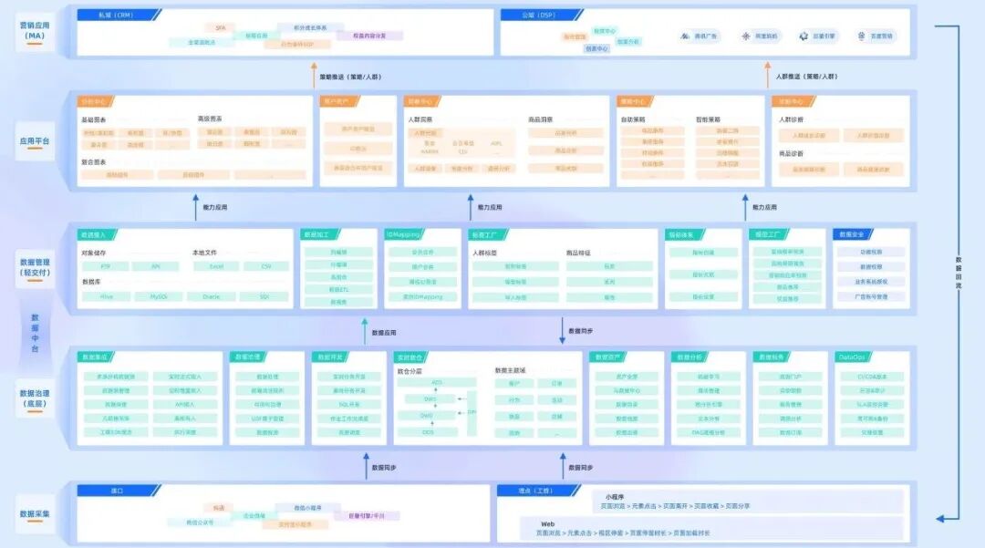 客道MA协助企业从用户需求出发,把企业在线下门店以及跨平台、多渠道的应用端数据统一整合,构建一个统一的基础数据管理分析平台,并将其能力开放给各子系统,以客户大数据分析助力其他系统发挥更大的价值。