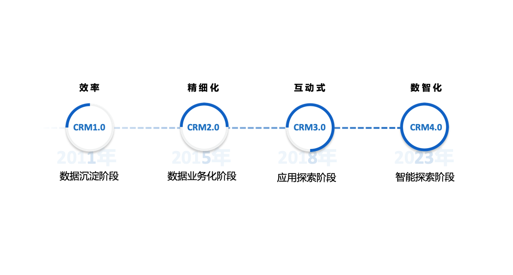 南讯向36氪展示了产品和服务的迭代升级,作为助力品牌连接用户的纽带,在不断进化的十三年时间里,南讯围绕ToC领域CRM的进化过程,将CRM从1.0到4.0总结为:数据沉淀阶段、数据业务化阶段、应用探索阶段、智能探索阶段,并且提炼出了4个发展阶段的核心要点:效率、精细化、互动式、数智化。