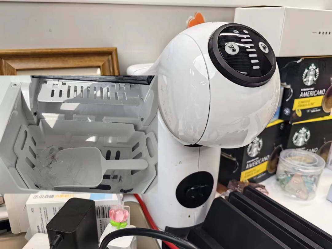 上班也要“冰美式自由”今年年初我换了一份工作,公司环境各方面都挺好,但我觉得唯一的弊端就是,公司园区太偏远了。因为如果我点外卖,需要额外支付10元运费。公司有食堂,吃饭问题是解决了,但作为一名已经重度依赖咖啡的打工人,我刚来公司时候,还是会发愁喝咖啡这个问题。虽然公司也有咖啡店,但作为一家“星巴克服务店”,除了价格和星巴克一样外,星巴克会员体系的攒星、优惠券等会员服务在这家店全都不适用,以及不知道是不是心理作用,我觉得这家店的出品口感都不太对。我就在想,既然每天都要一杯咖啡,一个月也要消费数百元,那为什么我不自己买一台迷你自动咖啡机?说干就干,我当天就下单买了胶囊咖啡机套装,下单后,我又想到,我平时喝的都是冰美式,与其让自己培养喝热美式的习惯,不如再添置一台制冰机,这样就一劳永逸了。自然,我有买制冰机的想法也不是凭空臆想的,因为我此前就有留意到,只需四五百元就能买一台家用制冰机。