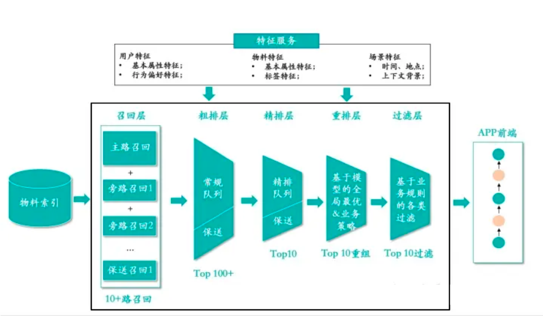 如上图所示,一个完整的推荐系统包含召回、排序(粗排、精排、重排、端排序)、业务过滤层等几个重要的逻辑分层。这多年虽然很多论文层出不穷,但是主要框架没有发生很大的变化,围绕这个架构的各个层进行深入优化,通过分阶段的贪心的方式来优化算法的效果,来提升整体的业务指标,算法“卷”起来。