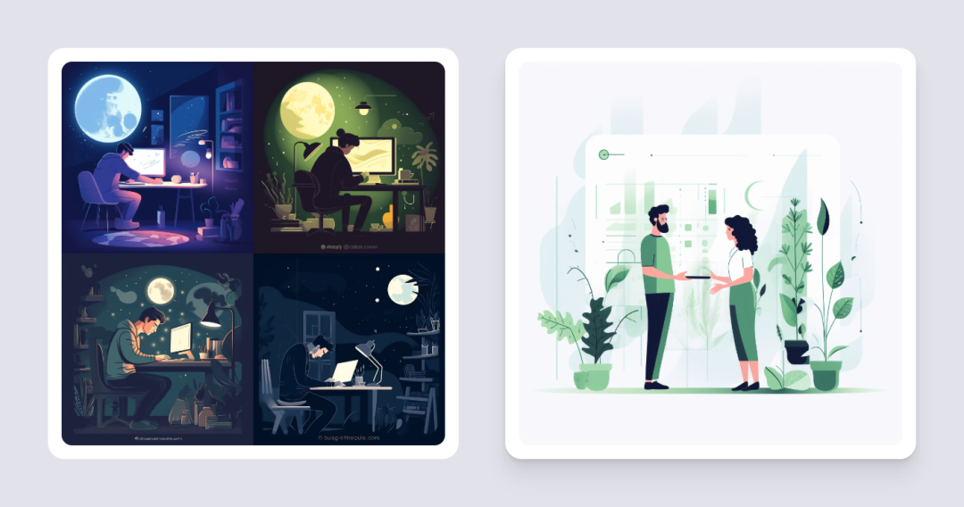 还可以通过不断的调整关键词来获取更多不同的内容的插画,扁平插画在UI设计的应用范围非常的广泛,不同风格的插画AI生成起来更是得心应手,通过更多的尝试相信小伙伴们也会掌握越来越多的技巧。