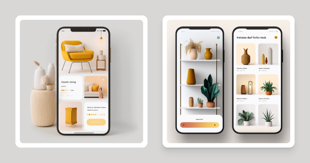 「An e-commerce app that sells home goods, with a banner, product arrangement, minimalist style, white background, colorful colors, pictures of related home products, creating a warm atmosphere, iOS app UI」
