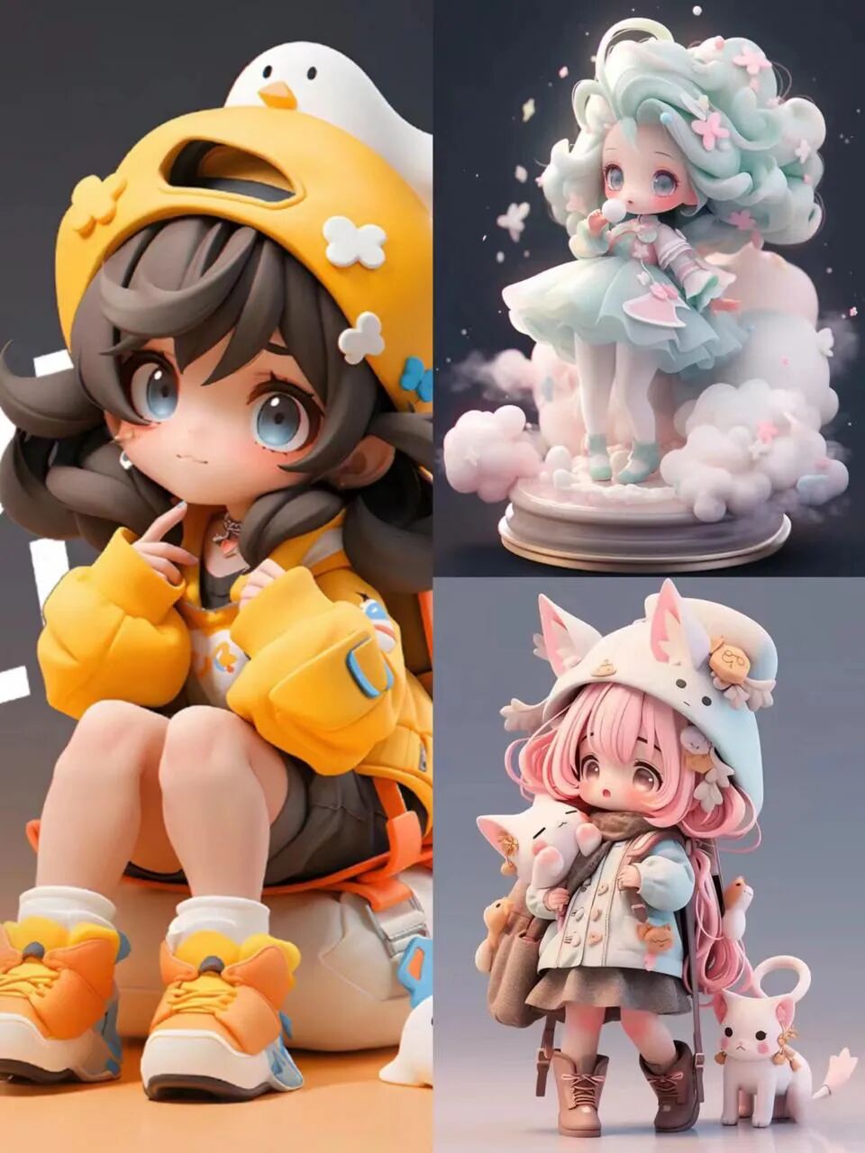 AI的神奇笔触,有魔法般的力量,将泡泡玛特风格的小女孩们,独特的童真童趣、可爱活力,生动而有趣地展现于你眼前,让人忍不住心生喜欢。