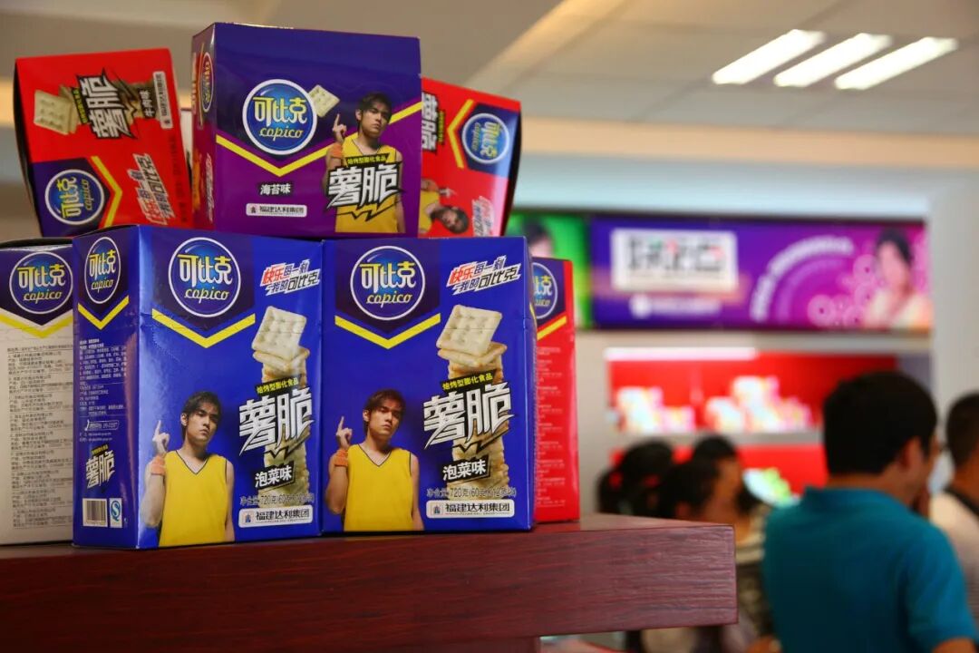 在这个过程中,除了找准一个已被别人成功“开荒”的细分品类作为模仿对象,达利食品还始终保持比对手更低的价格,同时采用全方位的明星代言“轰炸”,作为本土品牌也对终端渠道有更强大的掌控力。