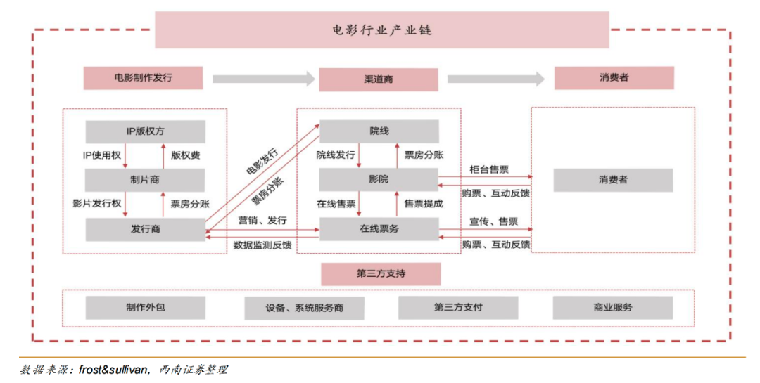近年,阿里影业旗下公司更多出现在主出品方的名单上。主要是以阿里巴巴影业集团有限公司、阿里巴巴影业(北京)有限公司、北京阿里巴巴影业文化有限公司以及上海淘票票影视文化有限公司等公司主体参投。这一点也可以从淘票票投资电影的角色转变看出来。淘票票共参投200部电影,其累计参与总票房超1049亿元。前几年,淘票票主要担任发行角色,比如在2017年上映的《战狼2》中,上海淘票票影视文化有限公司仅作为联合发行的角色。而近两年,在越来越多参投的电影中,淘票票以出品方或者联合出品方的角色出现。而新兴平台像抖音、B站等,也渴望在电影内容市场分一杯羹。不过目前还是以抢流量为主。其中,抖音布局电影的动作比较明显。早在2021年,抖音就试图进军电影在线票务市场。2021年春节档,抖音推出“抖音邀你看电影,4亿电影福利免费送”活动,邀请春节档电影的主创团队在直播间卖票,并提供站内购票服务。当年10月,收购了一家在线票务平台“影托邦”,目前已经更名为抖音电影票。不过在抖音上,目前影院仍旧是以自播售卖团购票为主。《中国企业家》发现,抖音电影票并未在一级入口,只有主动搜索才会出现。不过,抖音在电影投资上的成绩可圈可点。2023年,抖音联合出品了12部电影,其中3部票房超20亿元,包括《满江红》《流浪地球2》,以及《消失的她》。猫眼专业版数据显示,抖音文化在2022年和2023年联合出品里排名皆为第一,票房分别为131.87亿元、152.1亿元。近期即将上映的《超能一家人》《巨齿鲨2》,抖音文化也是联合出品方,在猫眼上想看人数分别为93万人、43万人。《2022强影之路》之公司观察:中短视频平台投资电影一直在做选择题,每经影视《阿里影业不仅是淘票票——在线票务系列报告之一》,西南证券