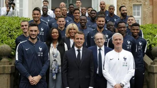 法国总统马克龙与法国队合影