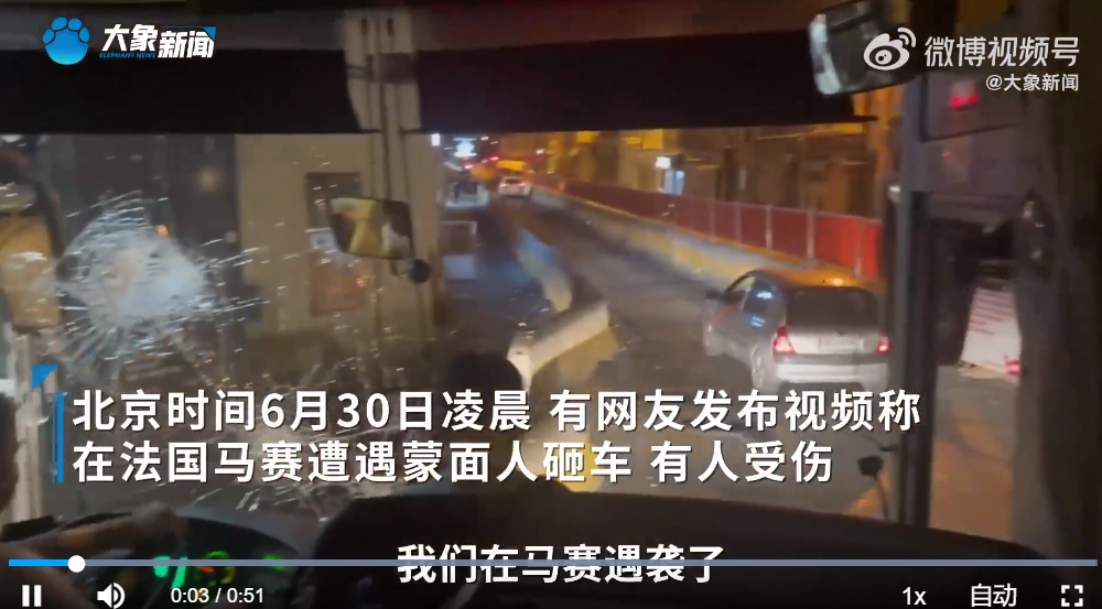 6月30日,法国马赛的骚乱波及到了一辆中国旅行团的大巴车,暴徒对中国游客的大巴车进行了打砸,数名中国游客受轻伤。幸亏中国驻马赛总领馆立即启动领事保护应急机制,协助旅行团报警并开展紧急处置,安排旅游团游客提前结束行程回国。