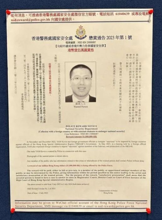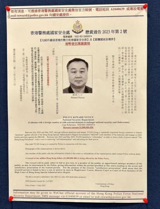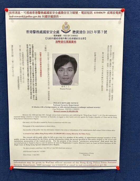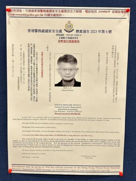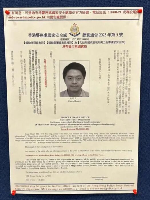 综合港媒报道,香港警务处国家安全处(国安处)今日(3日)下午3时召开记者会,国安处总警司李桂华表示,注意到反中乱港分子逃窜至海外后继续违法,强调香港警方有责任追究。警方早前已通缉8名人士,包括任建峰、袁弓夷、郭凤仪、郭荣铿、许智峯、蒙兆达、刘祖廸、罗冠聪,并每人悬红100万港元。