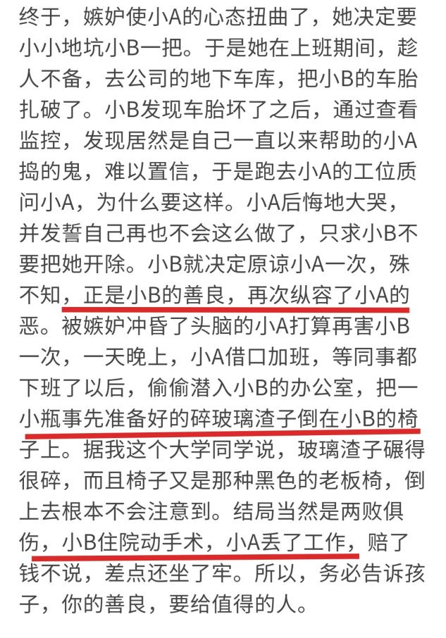 可她的付出不但没有换来小A的感激,反而引起了她的嫉妒。