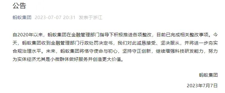 蚂蚁集团完成整改,71亿的罚单也靴子落地。